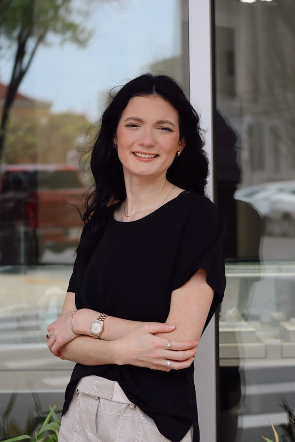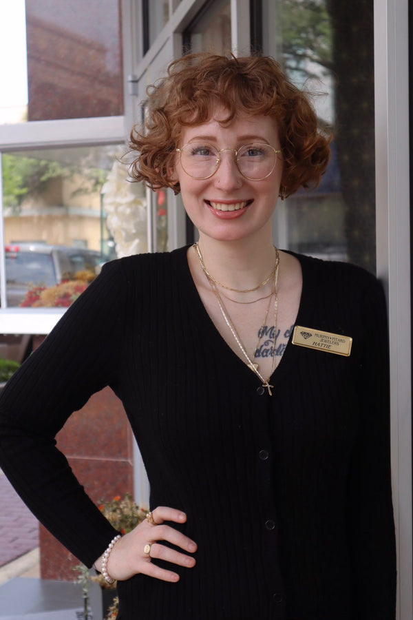 I returned to the jewelry industry as a sales associate for Murphy-Pitard in February of 2022, but I actually began in the jewelry industry when I was 16, taking my first after-school job with Antoon’s Jewelers in El Dorado. After high school, I moved to Fayetteville for school and worked in several other industries until my partner and I decided to move back home as we began our family.  When I came to Murphy-Pitard inquiring about a job, I was very pregnant. Amanda and Toddy allowed me to work part-time as a way to “test the waters,” and I was fortunate enough to fall in with this amazing group of fellow jewelry lovers! Aside from working with customers and jewelry, I also take care of the plants at MPJ because I have a green thumb! Ask me about Samantha and our venus fly traps sometime.