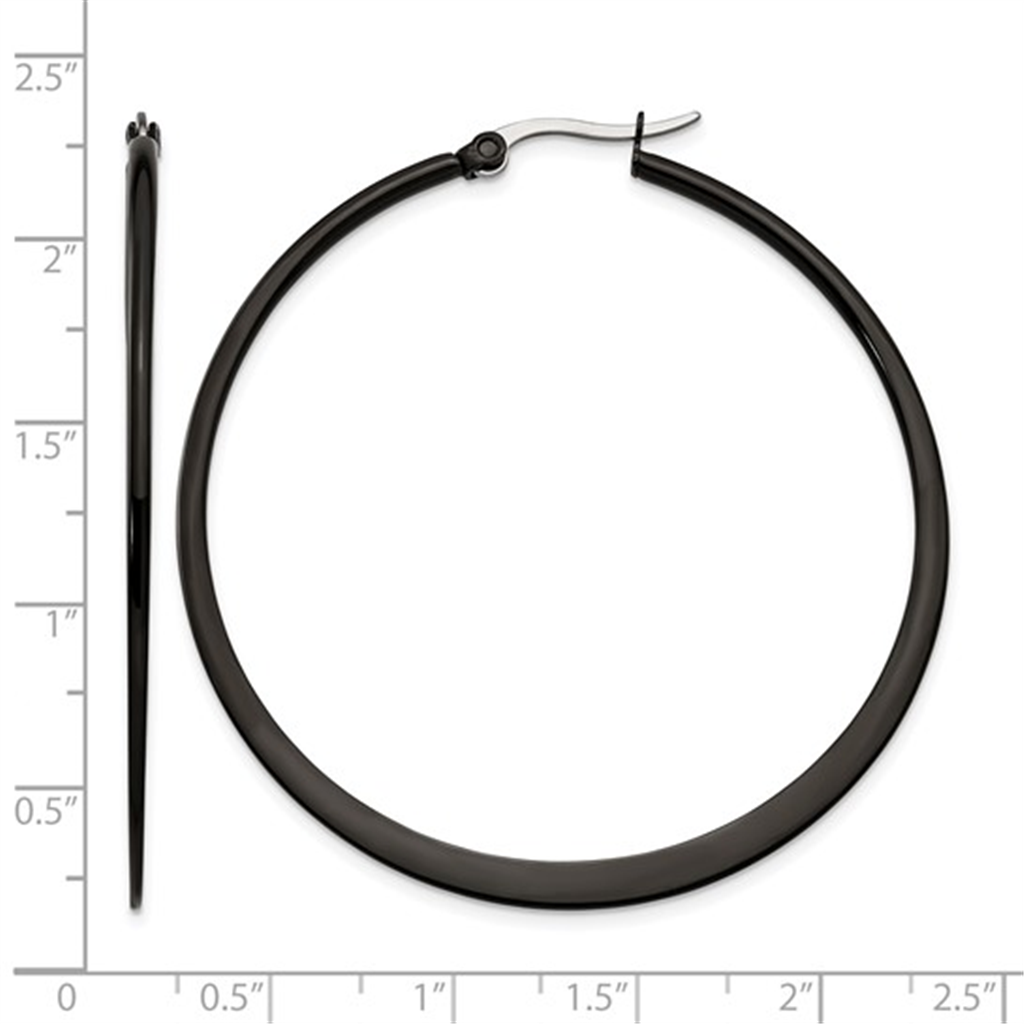 Stainless Steel Polished Black IP-plated 55mm Diameter 2mm Hoop Earrings