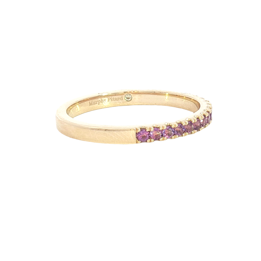 Discover the perfect blend of sophistication and vibrancy with our color stone fashion rings. This 14K yellow gold stackable band features round cut amethyst across the top half of the band. Total amethyst weight 0.27 carats. Designed to stand out, this ring adds a splash of color and a touch of elegance to any look. Find your standout ring today!