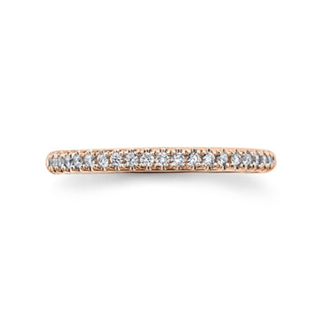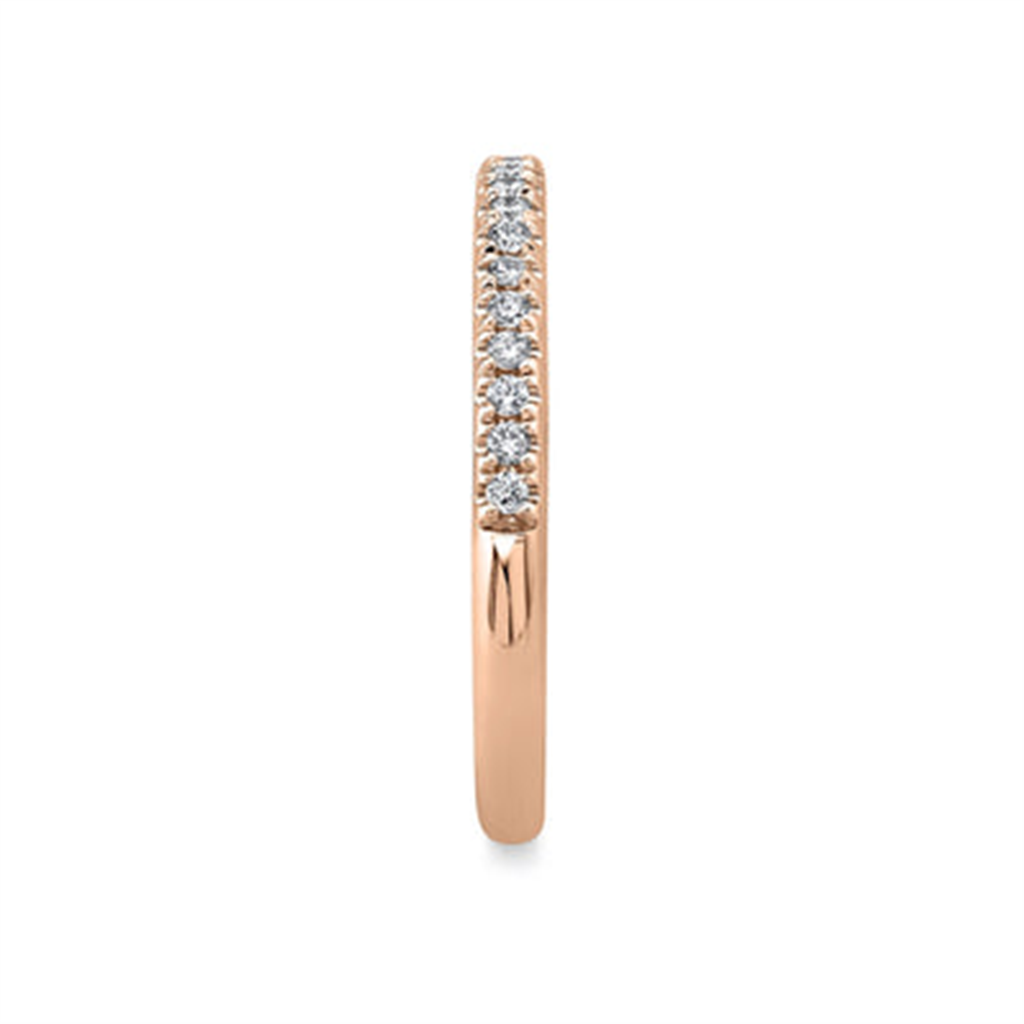 Discover the ideal symbol of everlasting love with our exquisite diamond bands. Designed to complement any occasion, this14K rosé gold stackable ring features round cut diamonds with a total weight of 0.18 carats on the top half of the band. Total diamond weight 0.18 carats. Shop now to find the perfect addition to your special moments.