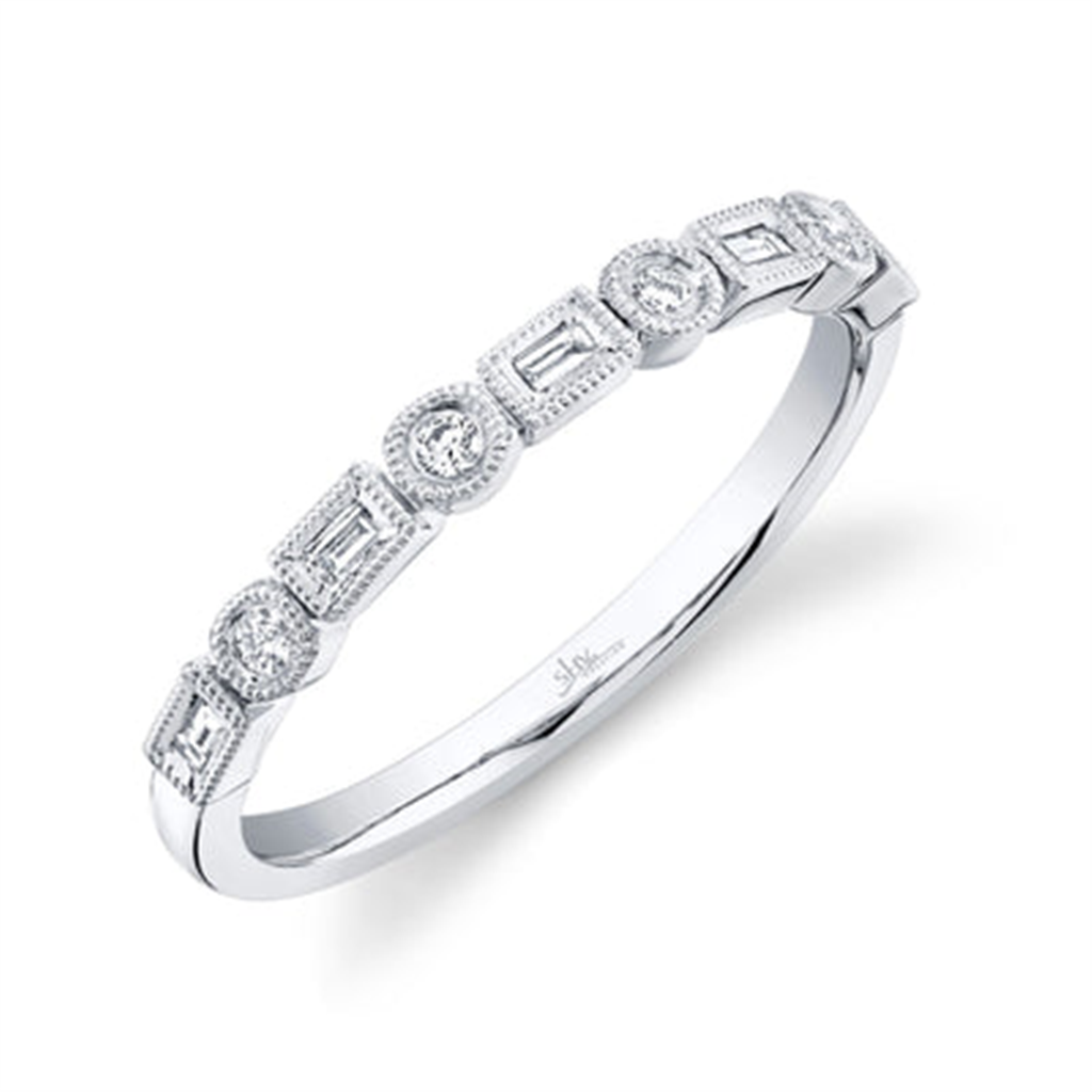 Elegant Diamond Bands 14K White Gold Milgraine Baguette & Round 0.14 Carats Diamond Stackable Band
