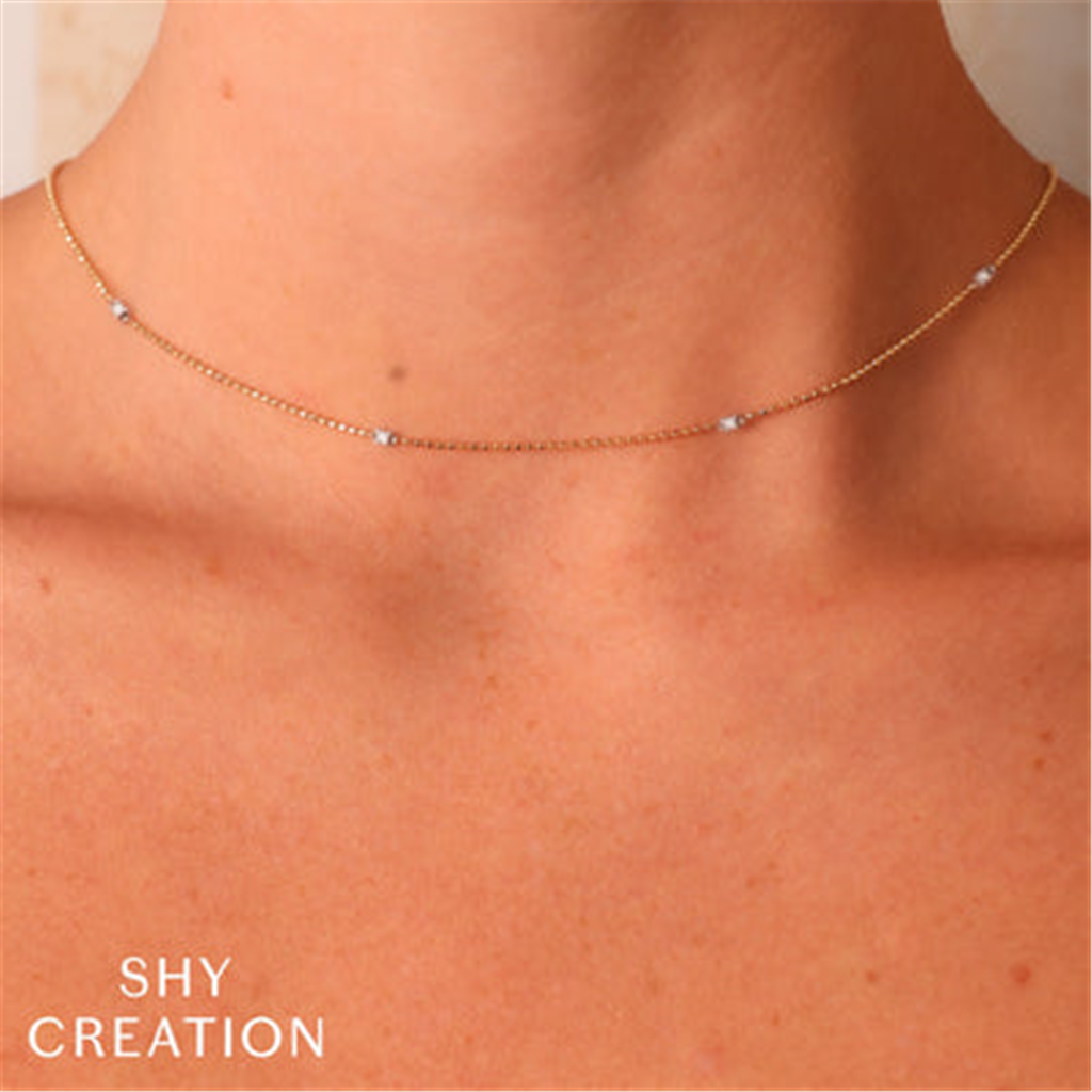 Elegant Diamond Necklaces 14K Yellow & White Gold 0.13 Carats Diamond Station Necklace - 18 Inch
