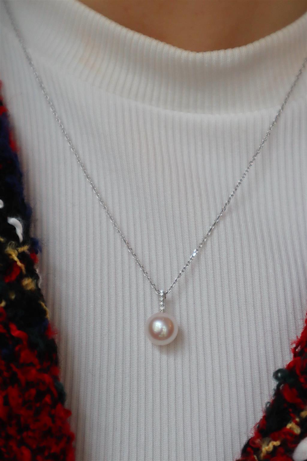 Elegant Pearl Necklaces & Pendants 14K White Gold 8 - 8.5 MM Akoya Cultured Pearl & 0.02 Carats Diamond Necklce - 18 Inch