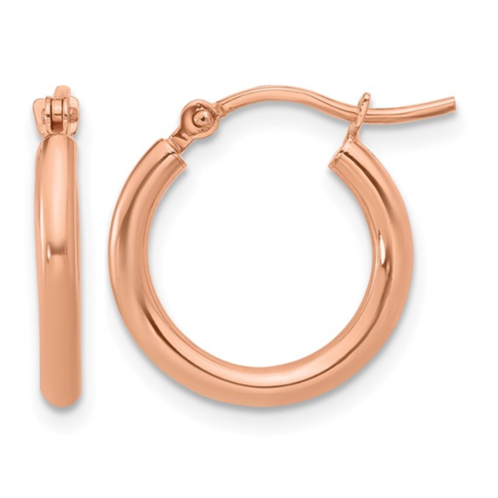 Elegant Precious Metal Earrings 10K Gold Rosé Small 15x2mm Hoop Earrings