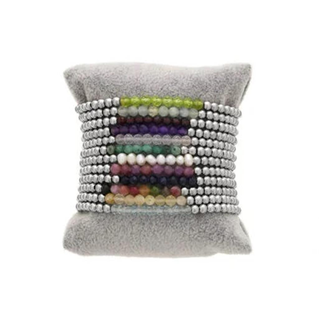 Shine Bright February birthstone mini stackable bracelet with 4 millimeter sterling silver high polish beads and faceted amethyst beads on stretch cord, size 8.