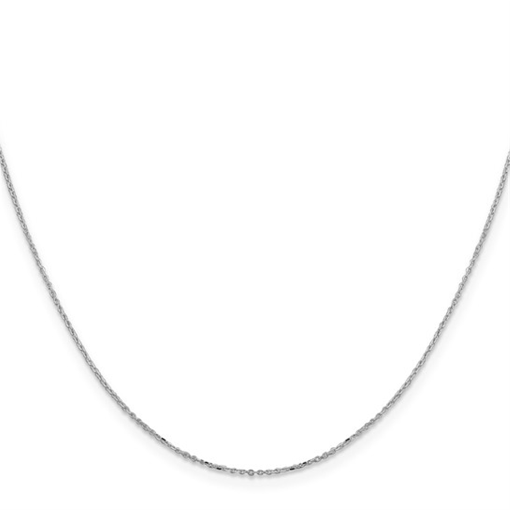 Rhodium-plated sterling silver 1.0 mm eight sided diamond-cut cable chain with a spring ring clasp. Length 18 inches.