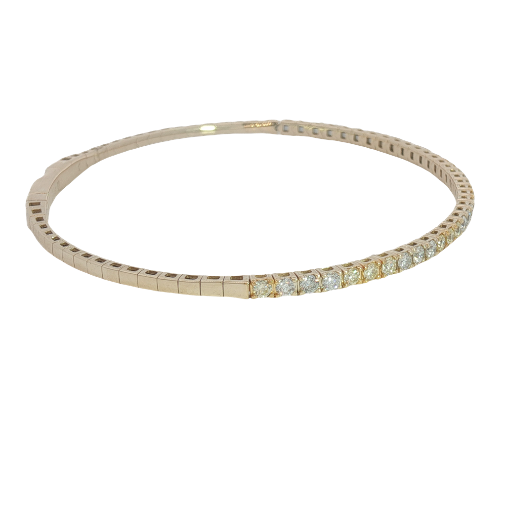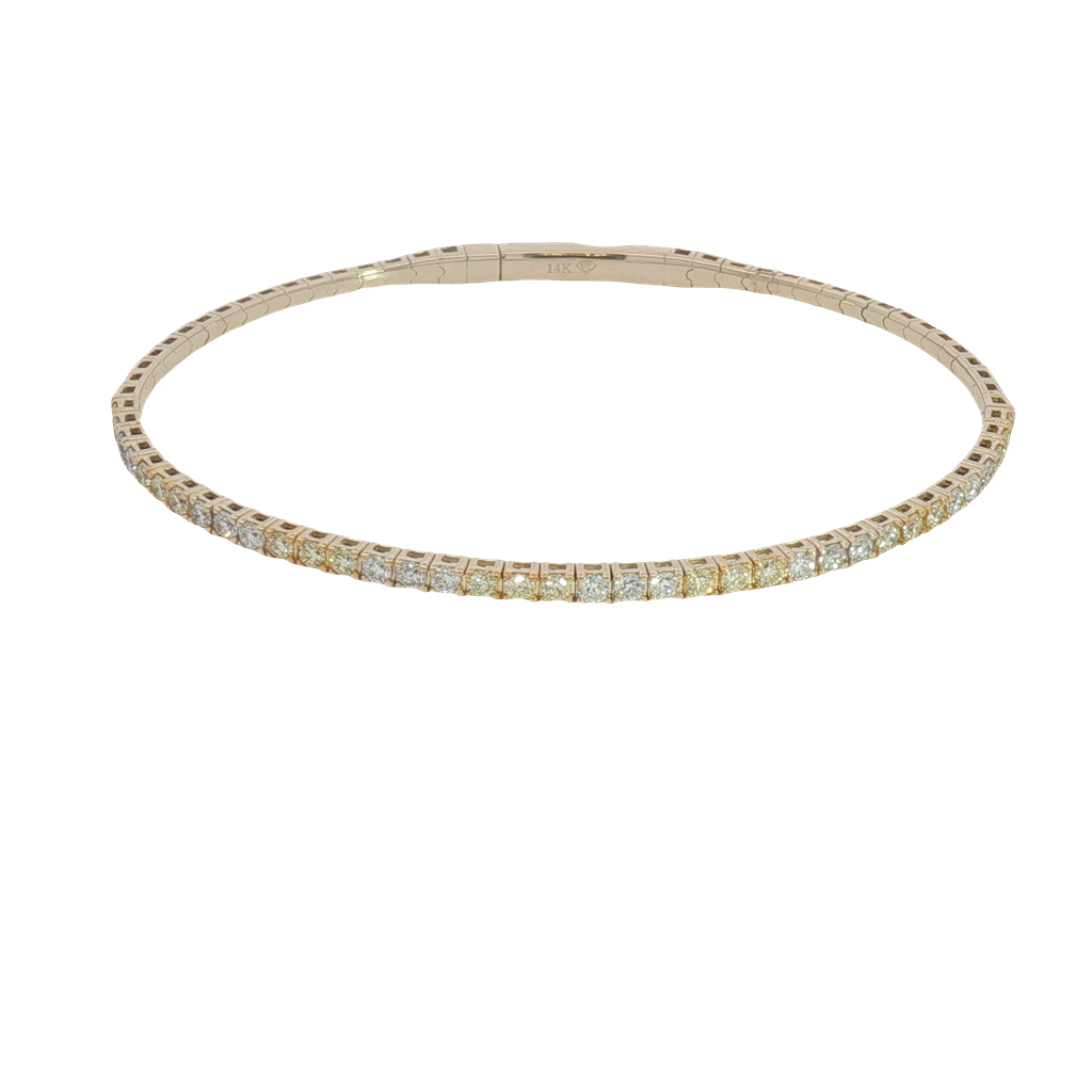 Indulge in timeless elegance with this exquisite 14K yellow gold flexible bangle bracelet. Meticulously crafted from lustrous 14K yellow gold, this bracelet showcases a mesmerizing row of brilliant round cut diamonds. Its classic design ensures it is a versatile piece that complements any ensemble.