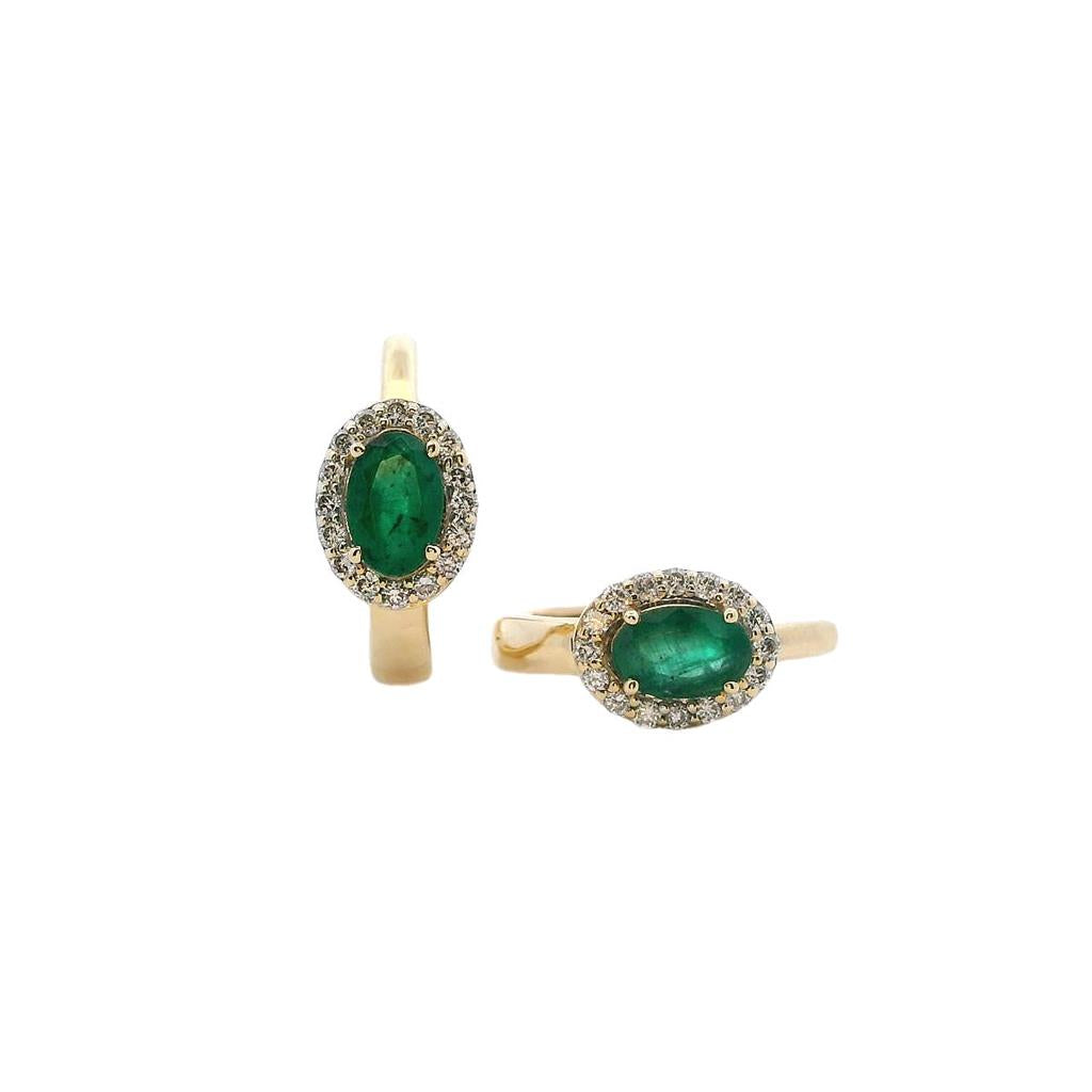 Add a splash of color and sophistication to your jewelry collection with our stunning color stone earrings. Crafted from Yellow 14K Gold of high Polished hinged hoop earrings, these Colored Stone Earrings feature Oval Emeralds weighing 0.88 carats total and are accented by Round Diamonds in an oval halo totaling 0.25 carats. Perfect for making a bold statement and enhancing any outfit, these earrings are designed to brighten your look with elegance and personality. Discover your new favorites today!